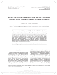 Summary Content type Content type Digital Document Resource Type Resource Type Text Genre Genre article Origin Information Origin Information Date Created/Date Issued 2021-09-10 Persons and Affiliations Persons Author (aut): Kamal, Nazmi Author (aut): Chung, Marian Publication/Container Information Publication Title Publication Title Journal of Gastronomy and Tourism Publication Number Publication Number 6(1) Physical Description First page number First page number 25 Last page number Last page number 44 Identifiers DOI DOI 10.3727/216929721X16105303036625